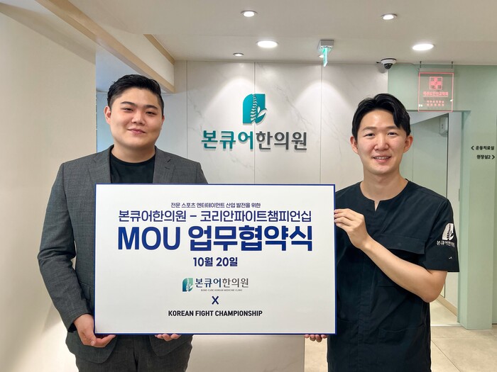 본큐어한의원(원장 송정현)은 코리안파이트챔피언십(대표 임동준)과 전문 스포츠 엔터테인먼트 산업 발전을 위한 상호협력을 체결했다고 밝혔다.