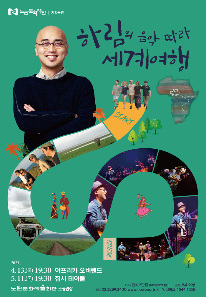 콘서트는 '하림의 음악 따라 세계여행'이라는 주제로 오는 4월13일과 5월11일 오후 7시30분, 노원문화예술회관 소공연장에서 75분 동안 진행될 예정이다.