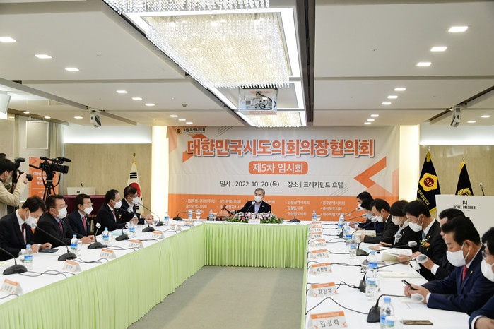 [시민일보 = 이대우 기자] 서울특별시의회(의장 김현기)와 대한민국시도의회의장협의회가 최근 서울 프레지던트호텔에서 ‘대한민국시도의회의장협의회 2022년 제5차 임시회를’ 개최했다.