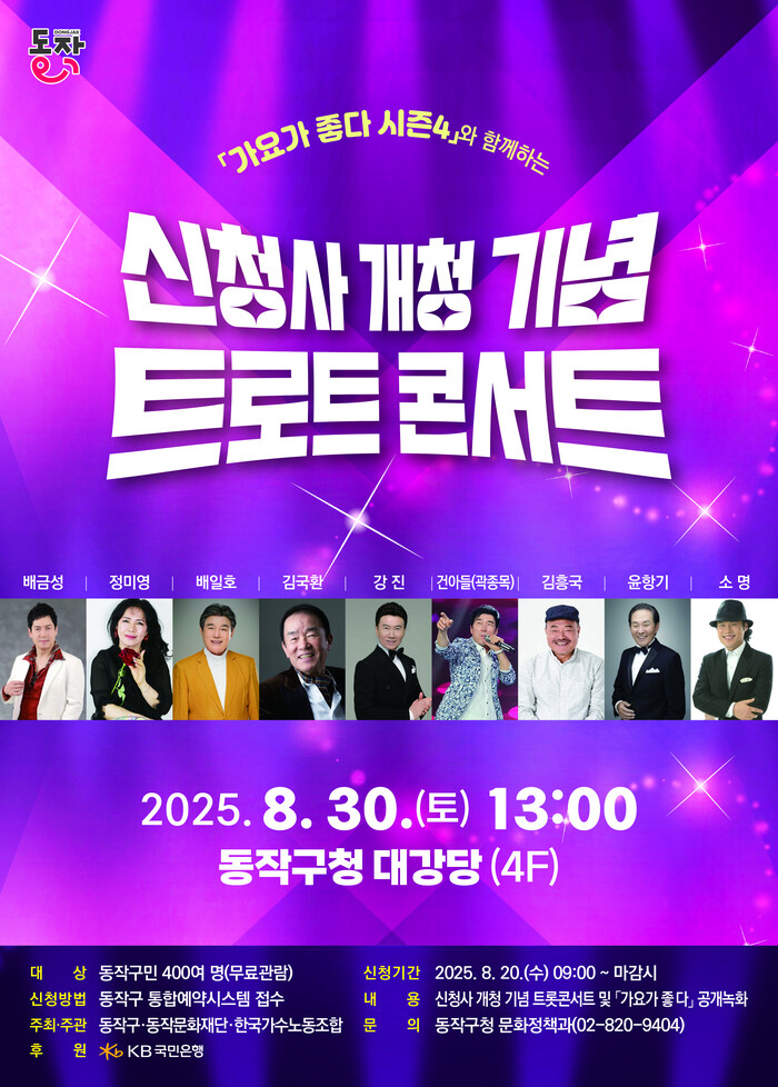 동작구, 동작문화재단, 한국방송가수노동조합이 공동으로 주관하며, 트로트 전문 방송 프로그램 ‘가요가 좋다 시즌 4’ 공개 녹화와 연계해 진행된다.