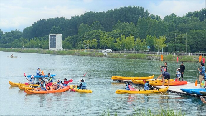 | ▲ 강동구청 카누선수단 재능기부로 진행되는 레저카누교실. (사진=강동구청 제공) |