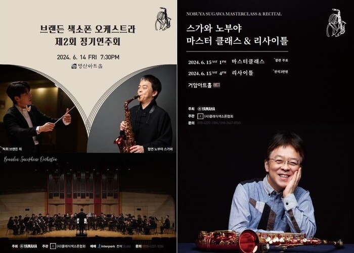 세계적인 악기 및 음향 전문기업 야마하뮤직코리아㈜(대표: 무쿠노 켄스케)가 오는 6월14~15일 영산아트홀과 거암아트홀에서 세계적인 색소폰 거장, ‘노부야 스가와’의 내한 공연을 주최한다.