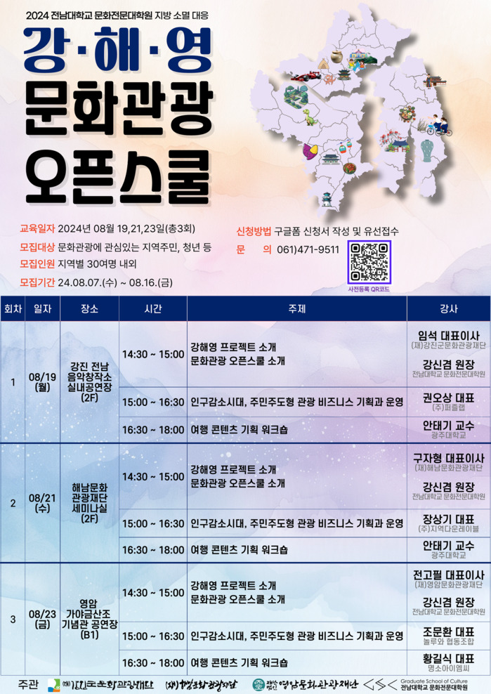 워크숍은 강진ㆍ해남에서는 안태기 광주대학교 교수가, 영암에서는 황길식 명소아이엠씨 대표가 진행한다.