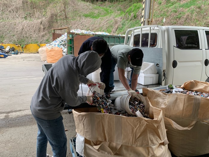 경기 수원시 권선구 구운동이 최근 나흘간 지역내 아파트 단지를 순회하며 폐건전지 580kg을 수거했다. 동은 오는 9월까지 폐건전지 집중 수거기간을 운영하고 주기적으로 아파트 단지에서 폐건전지를 수거해 재활용률 제고 및 환경보호에 기여할 예정이다. 사진은 최근 폐건전지를 수거하고 있는 동 관계자들의 모습. (사진제공=권선구청)