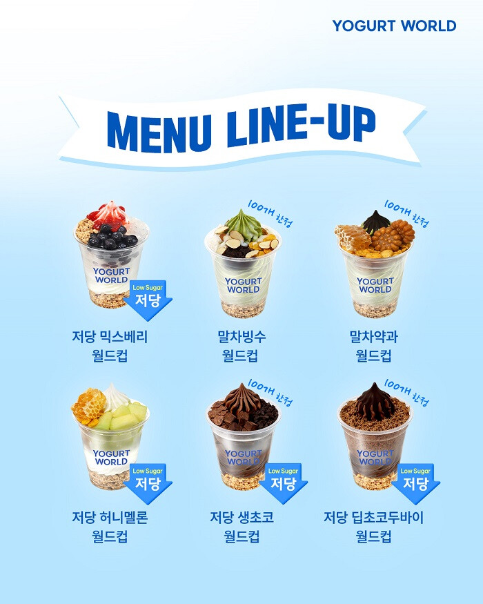요거트월드는 이번 페스티벌에서 시그니처 저당 요거트아이스크림을 포함한 총 6종의 메뉴를 선보이며 관람객과 만날 예정이다. ▲저당 믹스베리월드컵 ▲저당 허니멜론월드컵 등 저당 플레인 요거트아이스크림과 신선한 과일 기반의 디저트를 비롯해, ▲말차빙수월드컵 ▲말차약과월드컵 ▲저당 생초코월드컵 ▲저당 딥초코두바이월드컵 등 요월 시즌 한정메뉴 ‘제주말차 및 저당 딥초코 요거트아이스크림 세트 메뉴’도 만나볼 수 있다.