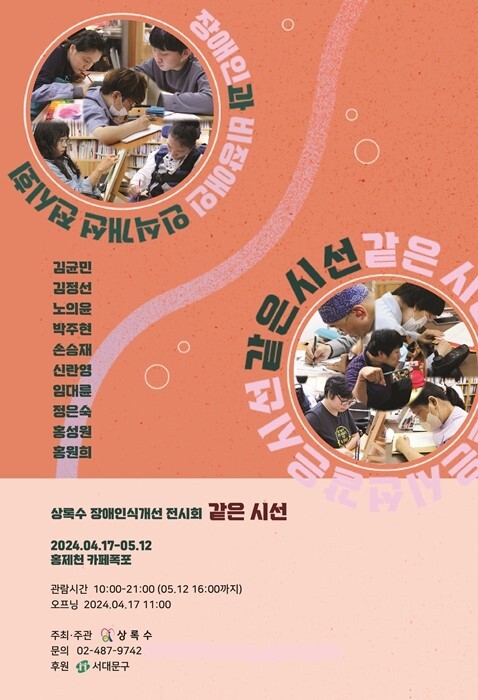 [시민일보 = 변은선 기자] 서울 서대문구(구청장 이성헌)는 장애인의 날을 맞아 홍제천 카페 폭포(연희로 262-24)에서 오는 5월12일까지 전시회 ‘같은 시선’을 개최한다.