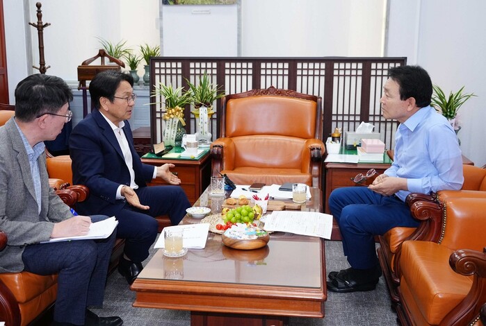 강 시장은 “광주·전남이 민·군공항 통합 이전을 위해 여러 노력을 하고 있지만 진척이 더딘 상황”이라며 “정부에도 요청하겠지만 서남권 관문공항 건설에 국민의힘도 적극 나서 달라”고 강조했다.