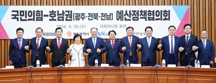 [광주=정찬남 기자] 광주광역시와 국민의힘은 25일 오후 국회에서 ‘2024년 호남권 예산정책협의회’를 갖고, 지역현안 해결과 내년도 국비 확보에 힘을 모으기로 했다.