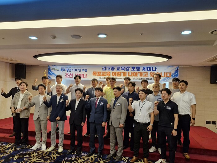 | ▲ 김대중 전남도교육감 초청 세미나 기념 목포청년100인 포럼 회원과 함께(사진=황승순 기자) |