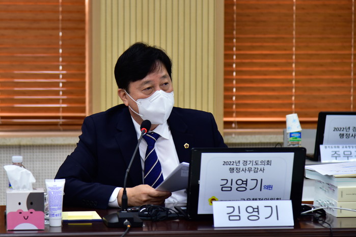 [수원=채종수 기자] 김영기 경기도의회 의원이 최근 경기도교육청 연천, 구리·남양주교육지원청에 대한 ‘2022년도 행정사무감사 제1분반 활동’에서 학교 예산 운용에 대한 교육지원청의 적극적인 컨설팅 지원 및 우수 사례 관리로 학교 예산의 효율적 관리를 도모해야 한다고 주문했다.