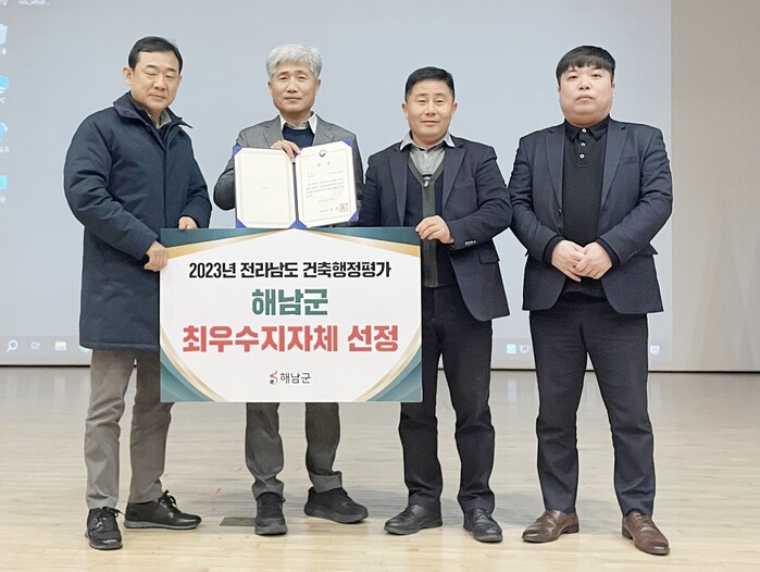 [해남=정찬남 기자] 전남 해남군이 2023년 전라남도 건축행정건실화 평가 최우수 지자체에 선정됐다.