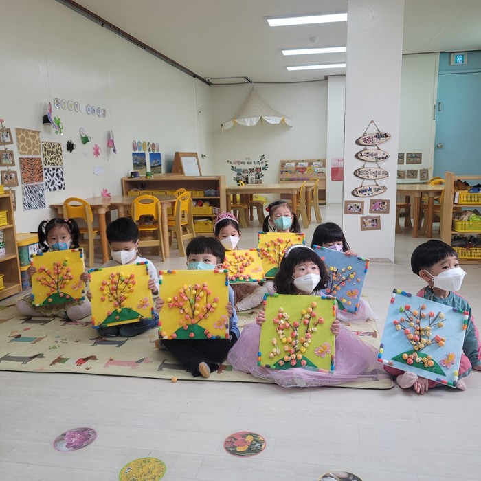 경기 오산시 궐동행복마을관리소가 지난 27일 영락어린이집 영·유아를 대상으로 봄맞이 기념 벚꽃나무 만들기 교육 프로그램을 운영했다. 이날 프로그램은 벚꽃나무에 대해 설명하고 팝콘과 나뭇가지를 가지고 액자에 벚꽃나무 모형을 만드는 순서로 진행됐다. 사진은 어린이들이 직접 만든 벚꽃나무 모형을 들어보이고 있는 모습. (사진제공=오산시청)