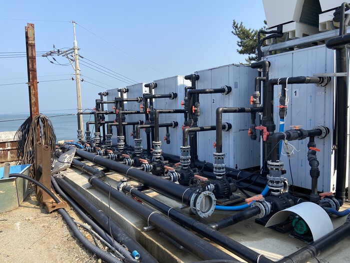 히트펌프는 화석연료를 사용하지 않고 바닷물의 잔열을 전기의 힘으로 모아 양식장 수온을 조절하는 장치로, 기존 기름보일러 대비 난방비를 최대 62%를 절감할 수 있다.