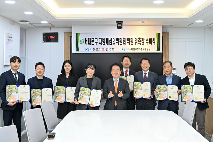 [시민일보 = 이대우 기자] 서울 서대문구(구청장 이성헌)가 최근 구청장실에서 ‘2025년 지방세심의위원회 위원’ 위촉식을 열고 18명의 위원들을 위촉했다.