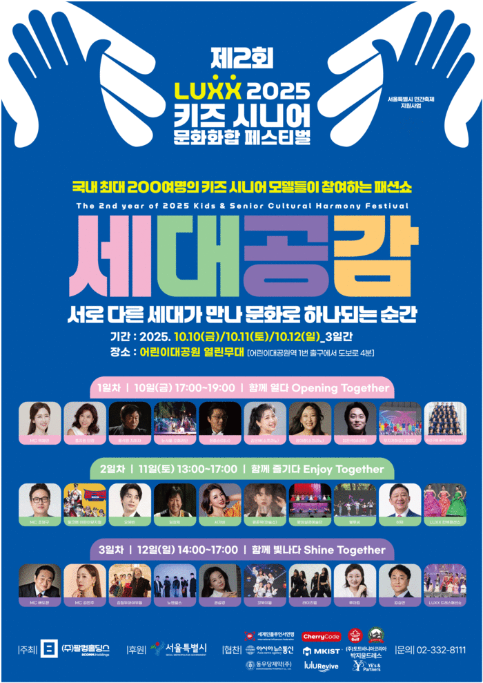 팔컴홀딩스 측은 “세대가 함께하는 문화를 통해 아이들과 시니어 모두가 주인공이 되는 축제를 만들고자 한다”며 “올해는 패션과 공연뿐 아니라 뮤지컬, 국악, K-팝 무대까지 아우르며 세대를 잇는 진정한 소통의 장이 될 것”이라고 전했다.