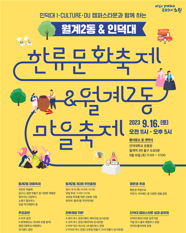 축제는 이 날 오전 11시부터 오후 5시까지 한류체험축제 ZONE, 월계2동 지역활성화 ZONE, 인덕대 캠퍼스타운 성과공유회 ZONE, 인덕 플리마켓 ZONE, 전통놀이 ZONE으로 구성되어 인덕대 운동장에서 열린다.