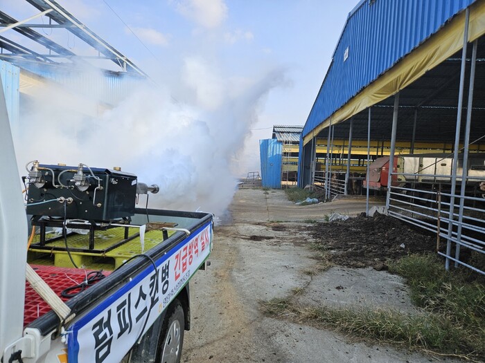 또한 영암군보건소와 각 읍·면 행정복지센터, 영암축협 공동방제단이 참여하는 협조 체계도 구축하고 가용장비를 총동원해 축사 방제활동을 실시하고 있다.
