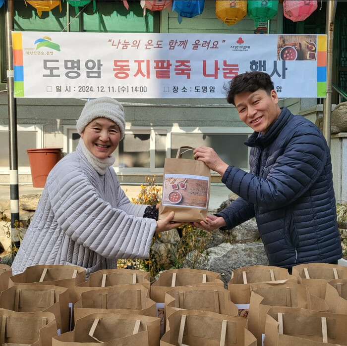 [시민일보 = 이대우 기자] 은평구(김미경 구청장) 구산동은 지난 11일 도명암이 동지를 맞아 직접 만든 팥죽을 기부했다고 밝혔다.