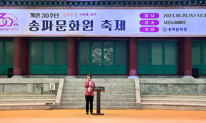 [시민일보 = 이대우 기자] 서울 송파구의회(의장 이혜숙)는 10월 26일(토) 14시 송파구 서울놀이마당에서 열린 ‘2024 송파문화원 개원 30주년 문화예술축제’에 참석했다.