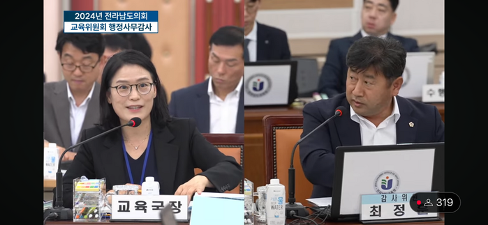 김영신 전남교육청 교육국장은 "아마 의원님께서 생각하시는 이유와 저희가 생각하는 이유가 같을 거라고 생각한다"고 즉답을 피했다.
