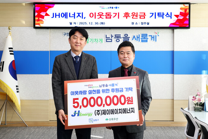 [인천=문찬식 기자] 인천 남동구는 제이에이치에너지로부터 취약계층 아동 지원을 위한 ‘아이리더 사업’에 후원금 500만원을 기탁받았다고 5일 밝혔다.