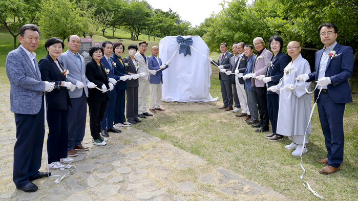 표지석 제막식에 참석한 내빈들은 표지석을 덮은 제막천을 내리는 세리머니와 함께 기념사진을 촬영하고 하고 지난해 옥전고분군이 세계유산으로 등재된 의미를 되새기는 시간을 가지면서 제막식을 마쳤다.
