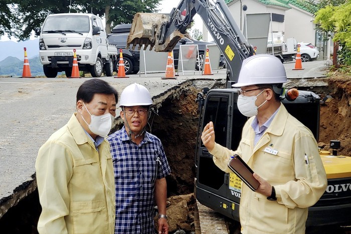 김윤철 군수는 “배수로와 안전을 확보하는 응급 복구공사와 장기적으로 안전한 배수로 시설공사로 구분하여, 신속하게 정비될 수 있도록 하겠다“며 ”당분간 불편이 있더라도 회양1구 주민의 우회 통행을 요청드린다“고 밝혔다.