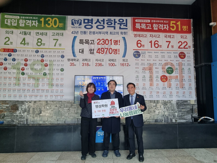 명성학원 이덕희 이사장은 응암1동 지역사회보장협의체 위원으로 활동하며 지역사회를 위해 봉사활동을 펼치고 있다. 기부된 성금은 사회복지공동모금회를 통해 주변의 어려운 이웃들에게 전달될 예정이다.