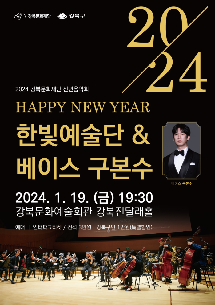 | ▲ 2024년 강북문화재단 신년음악회 '한빛예술단& 베이스 구본수' 포스터. (사진=강북구청 제공) |
