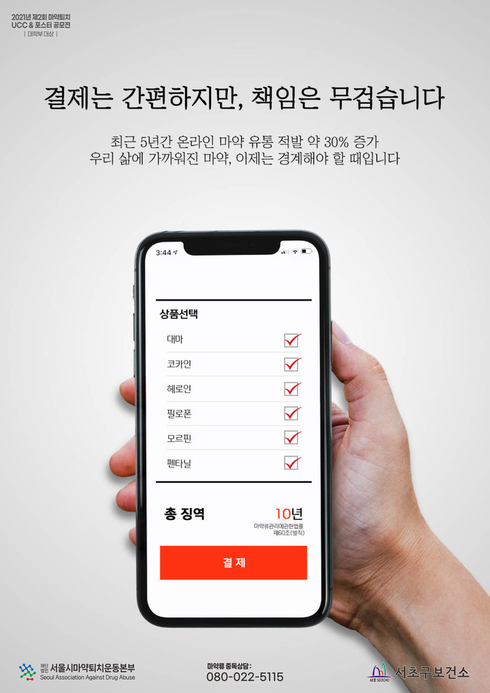 이번 캠페인 행사는 서초구보건소가 주최하며 서초구의사회, 서초구치과의사회, 서초구한의사회, 서초구약사회, 서울시마약퇴치운동본부, 서초경찰서가 함께한다.