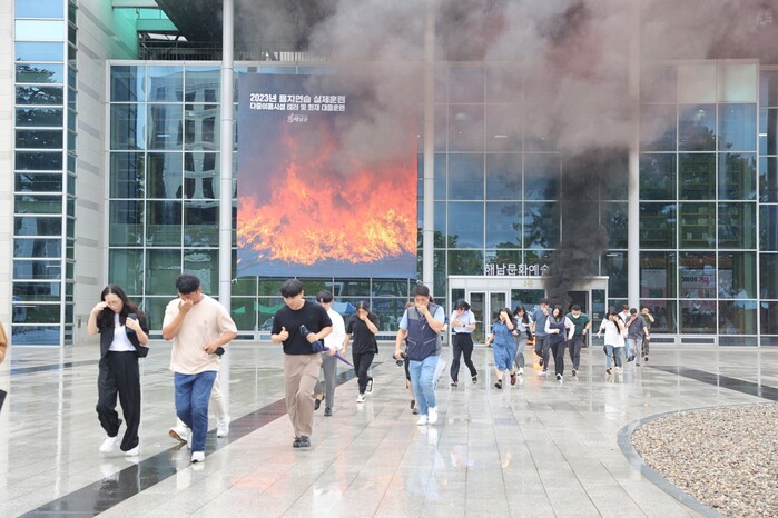 훈련은 최근 안보 상황을 반영해 다중이용시설에 테러 발생 상황을 가정해 테러 진압 및 화재 대응 훈련이 진행됐다.