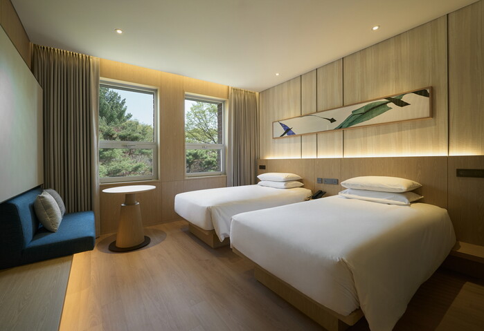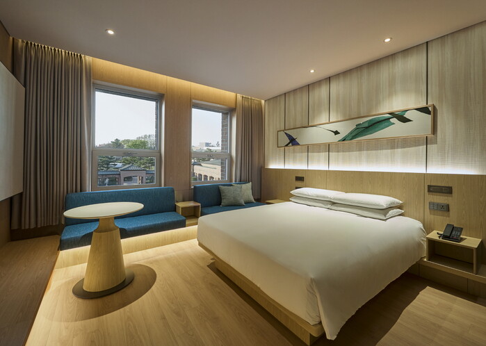 스탠다드 객실 대상으로 진행된 리노베이션은, 은은한 분위기를 풍기는 우드톤에 그린 컬러로 포인트를 줘 오래 머물러도 편안함을 느낄 수 있는 현대적인 인테리어로 객실을 꾸몄다.