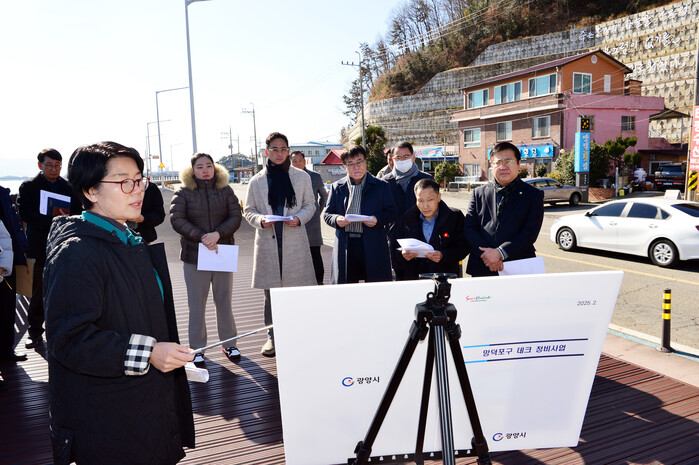 [광양=황승순 기자]광양시의회 총무위원회(위원장 박문섭)는 지난 13일 진월면에 위치한 망덕포구의 데크 정비 사업 현장을 직접 방문해 하자 보수 실태를 점검하고, 애로 사항 및 문제점 개선을 위한 현장 점검을 실시했다.