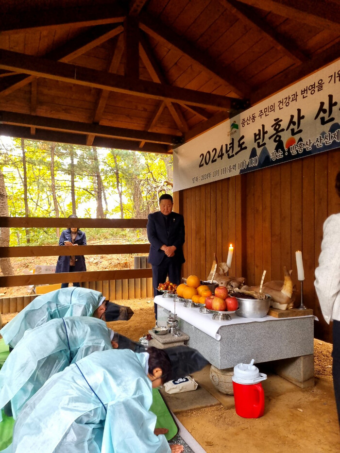 증산동 주민자치회와 통장협의회가 공동 주관한 이번 반홍산 산신제는 김미경 은평구청장, 나창균 증산동 번영회 고문, 강찬선 주민자치회장이 함께 주민의 건강과 번영을 기원하는 제례를 진행했다.