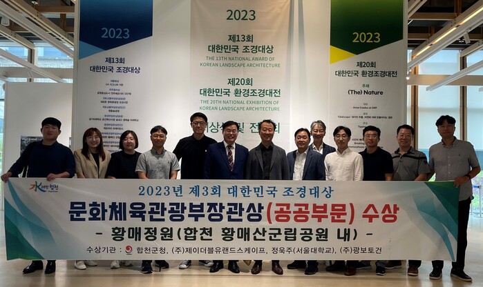 [합천=이영수 기자] 경남 합천군이 지난 13일 수원시 복합문화공간 111CM에서 개최된 '2023 제13회 대한민국 조경대상' 시상식에서 합천 황매산 황매정원이 문화체육관광부장관상을 수상했다고 14일 밝혔다.