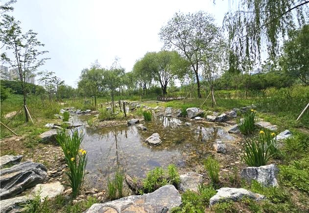 | ▲ 나대지였던 공간이 다양한 수종이 서식하는 생태습지로 바뀐 모습. (사진=영등포구청 제공) |