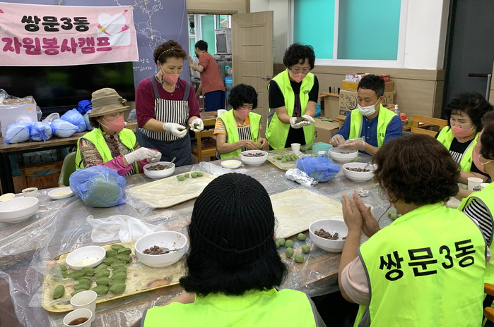 서울 도봉구 쌍문3동 자원봉사캠프는 지난 30일 추석을 앞두고 손수 만든 송편을 지역내 홀몸노인과 저소득층 가구에 전달했다. 사진은 봉사자들이 송편을 만들고 있는 모습. (사진제공=도봉구청)