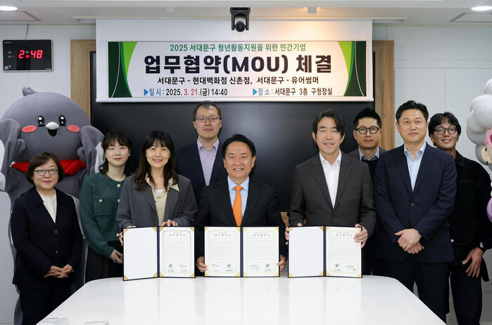 [시민일보 = 이대우 기자] 서대문구(구청장 이성헌)는 최근 구청장실에서 ‘서대문구 청년 활동 지원을 위한 민간기업 업무협약’을 맺었다고 25일 밝혔다.