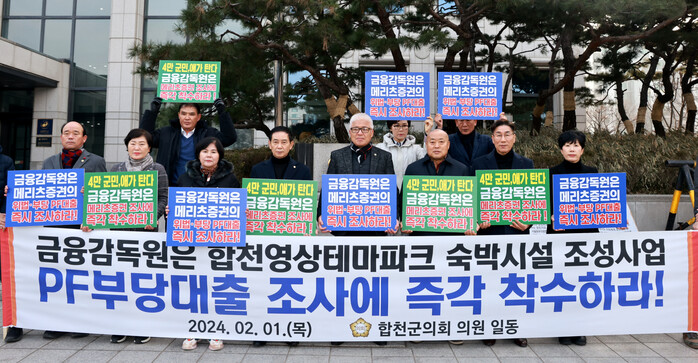 [합천=이영수 기자] 합천군의회(의장 조삼술)는 ‘영상테마파크 숙박시설 조성사업 PF대출’ 건에 대해 금융감독원의 즉각적인 조사를 강력히 촉구했다.