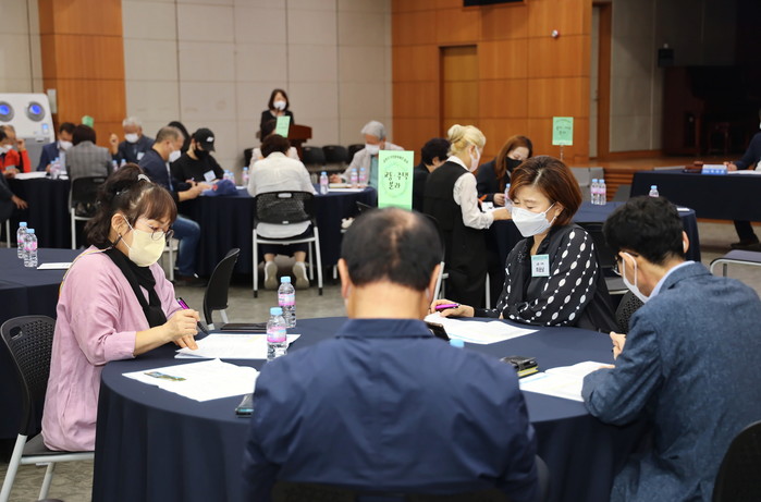 서울 금천구는 5일 주민참여예산 총회를 개최해 2023년 주민참여예산 사업 선정을 마쳤다. 이날 결정된 주민참여예산 사업은 12월 구의회 예산심의 후 최종 확정된다. 사진은 이날 총회가 진행되고 있는 모습. (사진제공=금천구청)