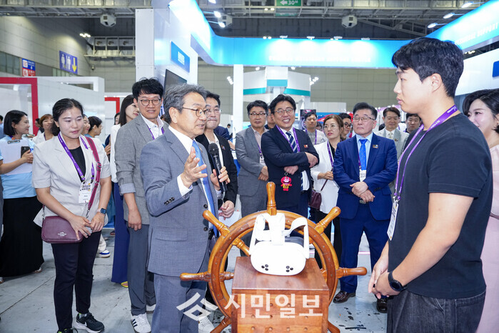 | ▲ 강기정 광주광역시장이 28일 김대중컨벤션센터에서 열린 국내 최대 문화콘텐츠 전문 전시회인 '2025 광주 에이스 페어(ACE Fair)' 개막식에 참석해 전시부스를 관람하고 있다. /광주광역시 제공 |