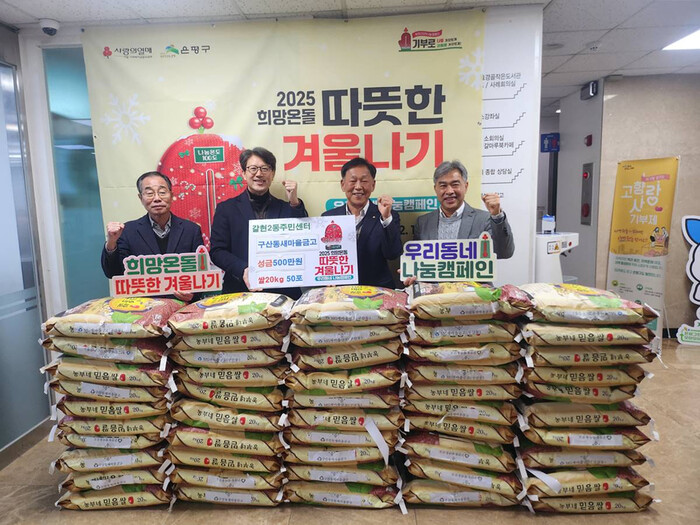 구산동새마을금고는 사회복지공동모금회와 함께하는 희망온돌 따뜻한 겨울나기 사업에 동참해 성금 5백만 원과 성품으로 백미 20kg씩 50포를 기부했다.