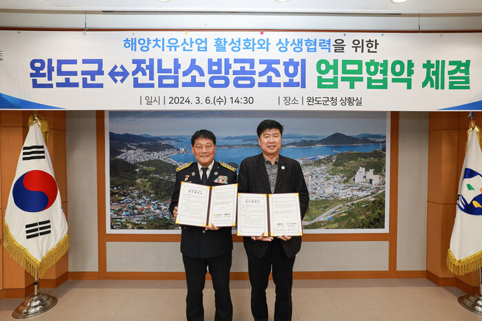 최인석 전남소방공조회 회장은 “해양치유가 국민의 생명 보호를 위해 위험을 무릅쓰고 일하는 소방공무원들의 건강 증진에 기여할 수 있길 바란다”라며 “앞으로 완도군의 해양치유산업 활성화는 물론 지역사회 안전과 발전을 위해 군과 적극 협력해 나가겠다”라고 말했다.