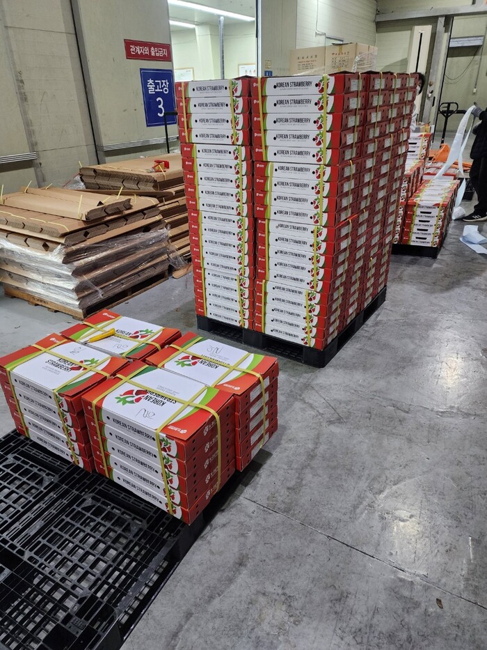 진주시는 지난 14일 2023년 하반기 작기에 수확한 진주 금실 딸기 1.6t을 홍콩, 싱가포르 등 동남아 5개국으로 수출함으로써 하반기 딸기 수출을 시작했다.