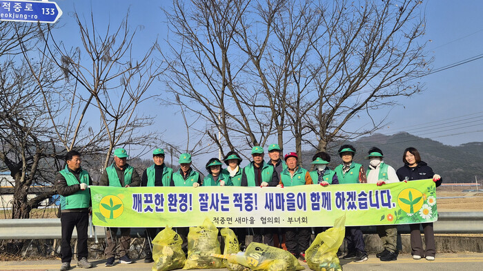 이날 행사에는 회원 20여 명이 참여해 적중면 일대 주요 도로와 마을 주변을 중심으로 환경정화 활동을 펼쳤다. 도로변과 배수로 등에 방치된 생활 쓰레기와 영농폐기물을 수거하며 구슬땀을 흘렸고, 주민들이 깨끗하고 쾌적한 환경에서 명절을 보낼 수 있도록 힘을 모았다.