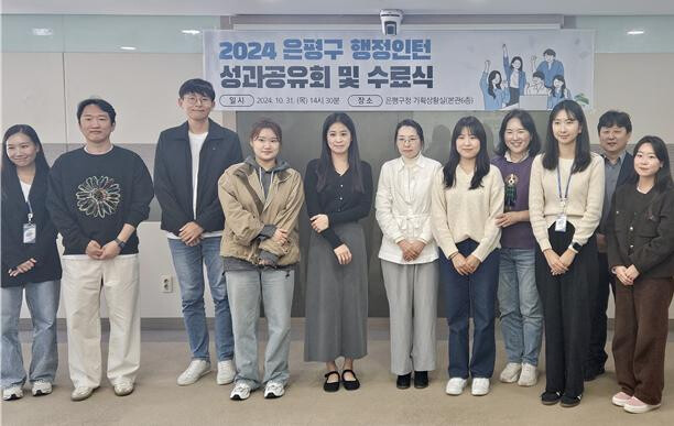 [시민일보 = 이대우 기자] 은평구(구청장 김미경)가 최근 ‘2024년 은평구 행정인턴’ 성과공유회 및 수료식을 개최했다고 밝혔다.