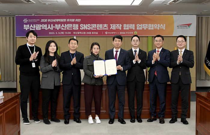 [시민일보 = 여영준 기자] BNK부산은행은 9일 부산시청에서 부산시와 ‘2030 세계박람회 부산유치를 위한 SNS 콘텐츠 제작 업무협약’을 체결했다고 밝혔다.