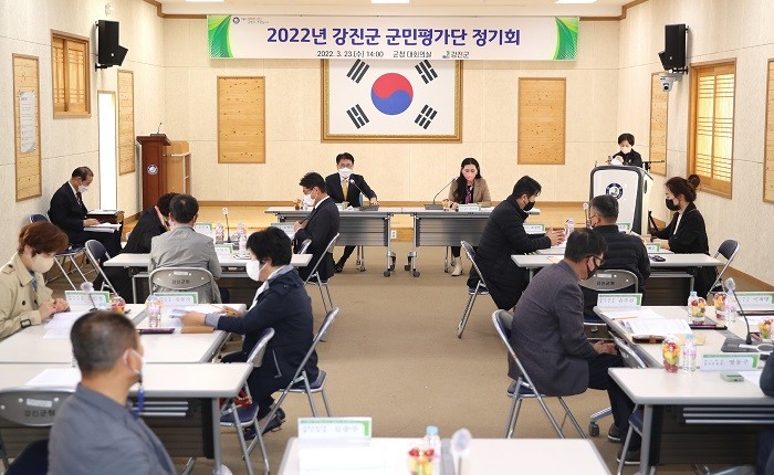 [강진=정찬남 기자] 전남 강진군은 지난 23일 군청 대회의실에서 이승옥 강진군수와 군민평가단, 관계 공무원 등 30여 명이 참석한 가운데 2022년 군민평가단 정기회의를 개최했다.