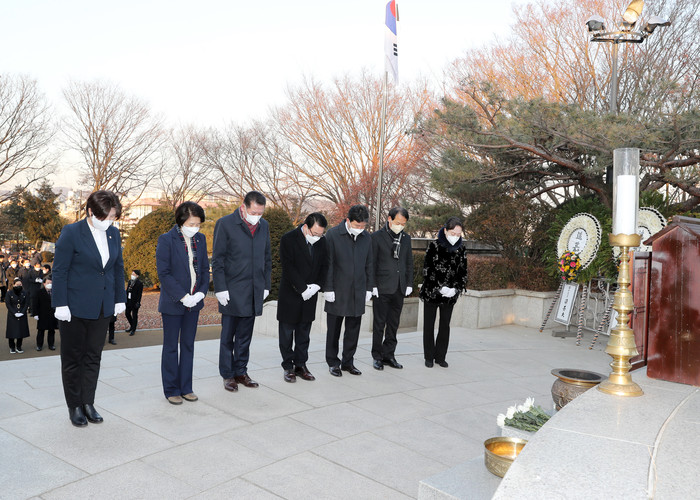 | ▲ 3일 오전 광명시의회 의원들이 현충탑 참배로 2022년 임인년(壬寅年) 새해 첫 의정활동을 시작하고 있다. (사진제공=광명시의회) |