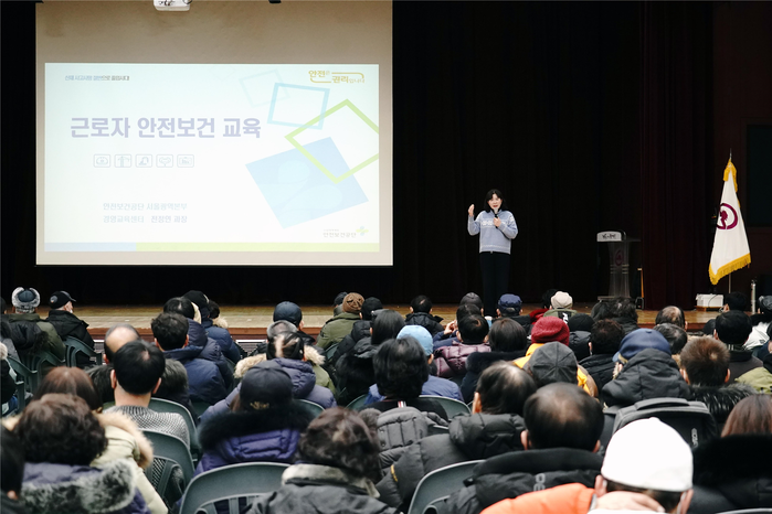 | ▲ 안전보건교육 받는 2025 상반기 동대문구 동행일자리 근로자들. (사진=동대문구청 제공) |